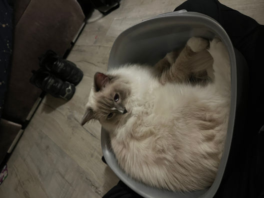 Jest 10 miesięcznym kotkiem rasy ragdoll, urodzonym 24 września 2022 r, który jest moim wymarzonym prezentem na 17 urodziny. Jest to wspaniały kot, najlepszy prezent od mojej mamy jaki mogłam sobie wymarzyć. Do momentu kiedy nie zachorował był moim codziennym porannym budzikiem, liżący mnie po twarzy jak odwracałam się na bok i nie chciałam się obudzić.